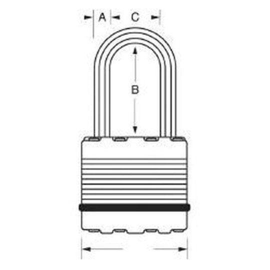 • Visací zámek o šířce 64 mm s tělem z vrstvené oceli zpevněný titanem pro vyšší odolnost a spolehlivost.