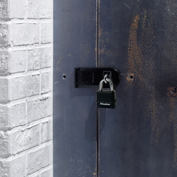 - Visací zámek o šířce 56 mm s tělem ze zinkového odlitku s povrchem potaženým termoplastem odolným proti povětrnostním vlivům.