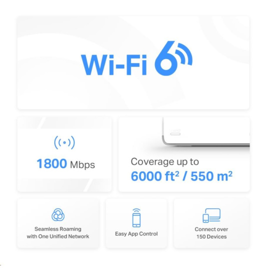 • Pokrytí celé domácnosti – pokrytí prostoru až 550 m2 (6 000 čtverečních stop) vysokorychlostní sítí Wi-Fi, která eliminuje mrtvé zóny Wi-Fi pokrytí ve vaší domácnosti.
