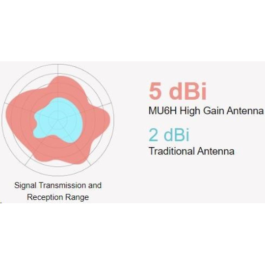 MU6H přijímá signály Wi-Fi ve dvou samostatných pásmech. Podpora 256-QAM technologie zvyšuje datovou rychlost v pásmu 2,4 GHz ze 150 Mb/s na 200 Mb/s, což přináší o 33% rychlejší výkon. Vyberte si 2,4 GHz pro surfování a sociální média a 5 GHz s rychlostí 433 Mb/s pro streamování v HD a hraní bez zpoždění.