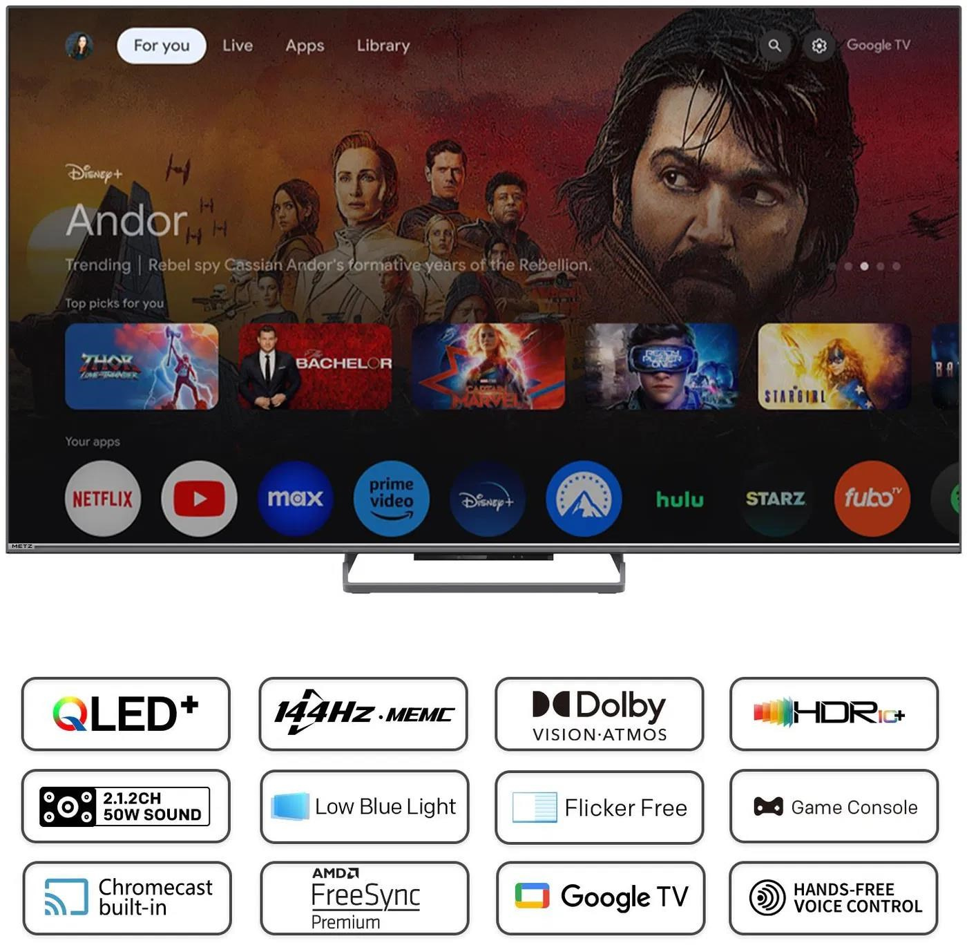 Metz 65MQE8000Z 65" TV, 4K Ultra HD, QLED, Bluetooth, Dolby Atmos, HDR, Google TV, AMD FreeSync Premium