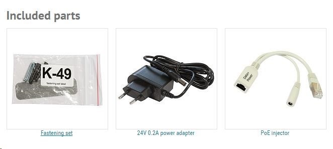 Balení obsahuje: cAP Lite, napájecí adaptér, PoE injektor, montážní sada, druhá krabička