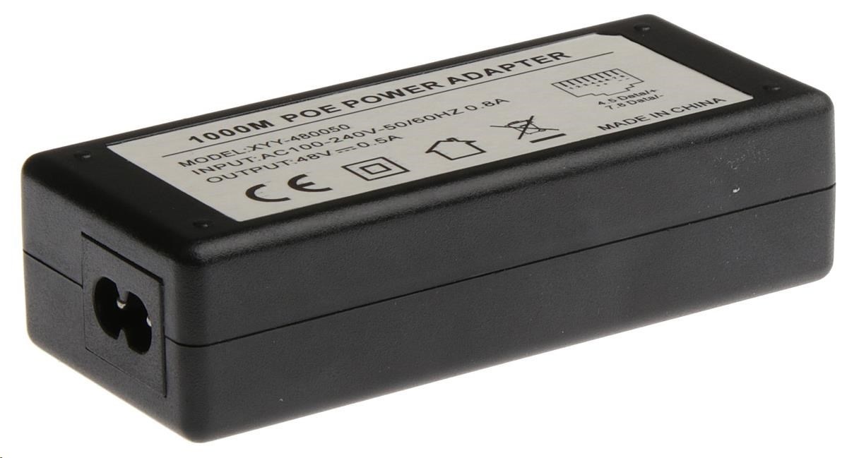 HS24-4800 je pasivní, Gigabitový, stabilizovaný PoE adaptér s uzemněním, indikační LED, výstupním napětím 48V a max. proudem 0.5A. Maximální výstupní výkon je 24W. Napětí je vedeno na těchto pinech: 4,5 (+), 7,8 (-). Součástí balení je napájecí 2-pinový kabel..