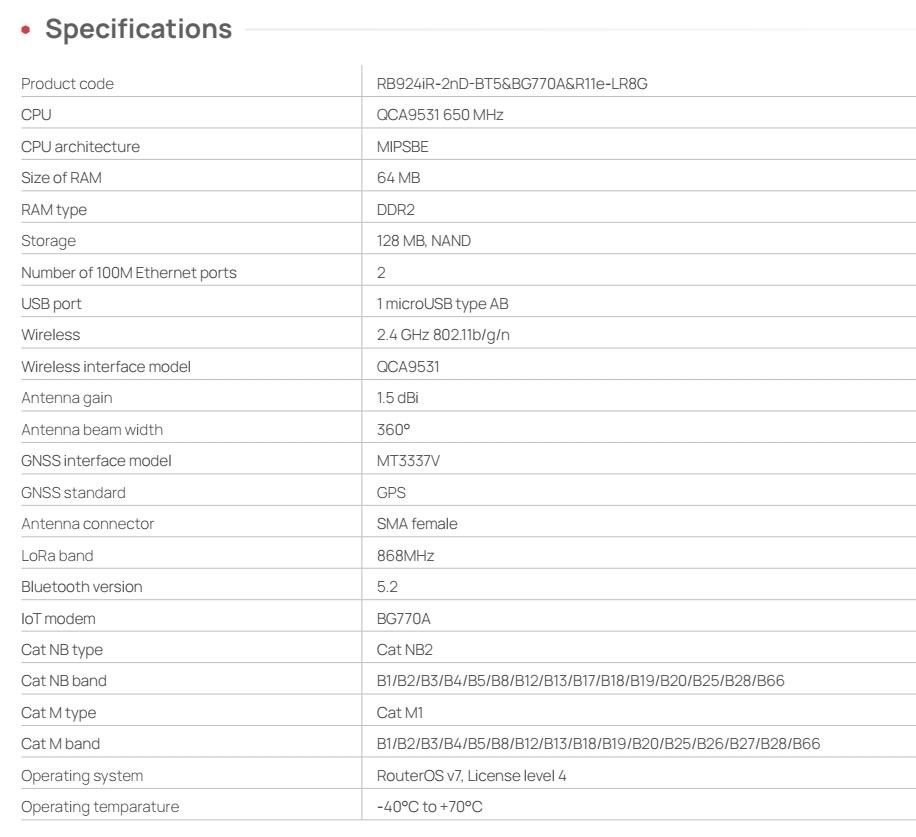 MikroTik RB924iR-2nD-BT5&BG770A&R11e-LR8G IoT Gateway KNOT LR8G kit