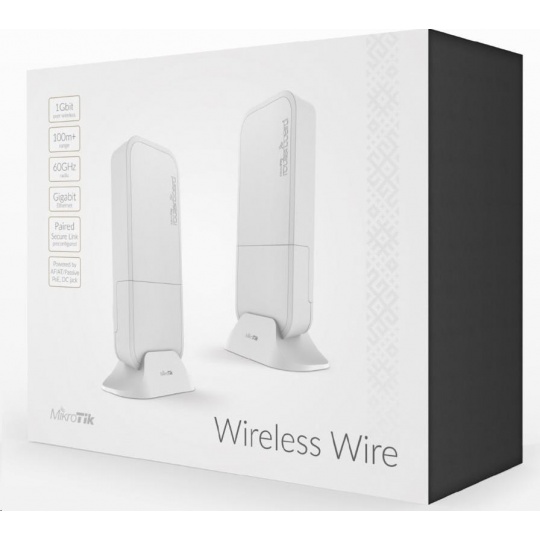 RBwAPG-60ad je naprosto revoluční novinka v MikroTik sortimentu, která osloví každého, kdo vytváří spoje na krátké vzdálenosti. RBwAPG-60ad je kompletní bezlicenční spoj v 60GHz pásmu pracující se standardem 802.11ad, který v reálném provozu umožňuje propustnost až 1000Mbps Full Duplex na vzdálenost až 100m. RouterBoard je jako vždy vybaven velmi oblíbeným operačním systémem RouterOS s L3 licencí. Pro upgrade jedné z jednotek na AP je potřeba dokoupit pouze L4 licenci.