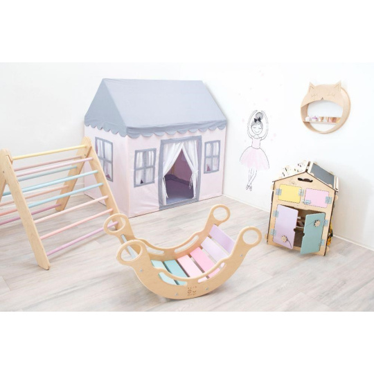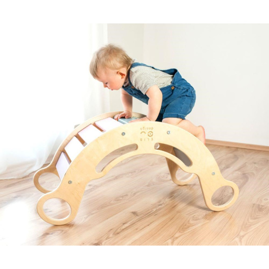Montessori duhová houpačka 5in1 natur, lakované okraje, duhové desky
