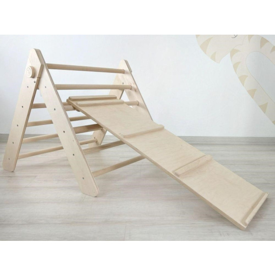 Při doplnění Piklerové trojúhelníku originálními doplňky získá tato dětská prolézačka nový, zábavnější rozměr. K žebříku můžete připojit oboustranné prkno a proměnit tak prolézačku v malé dětské hřiště.
