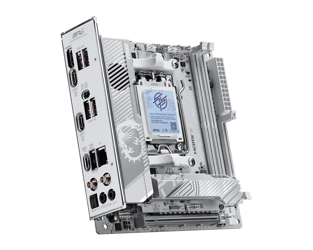 MPG X870I EDGE TI EVO WIFI is covered with a silver-white color scheme for white PC build lovers to show off different identity. It is also powerful because of its true Wi-Fi 7 solution, 5G LAN, USB4, and the latest PCIe 5.0 compatibility, and this is the best white theme X870 ITX motherboard for AMD Ryzen™ 9000 series processors.
