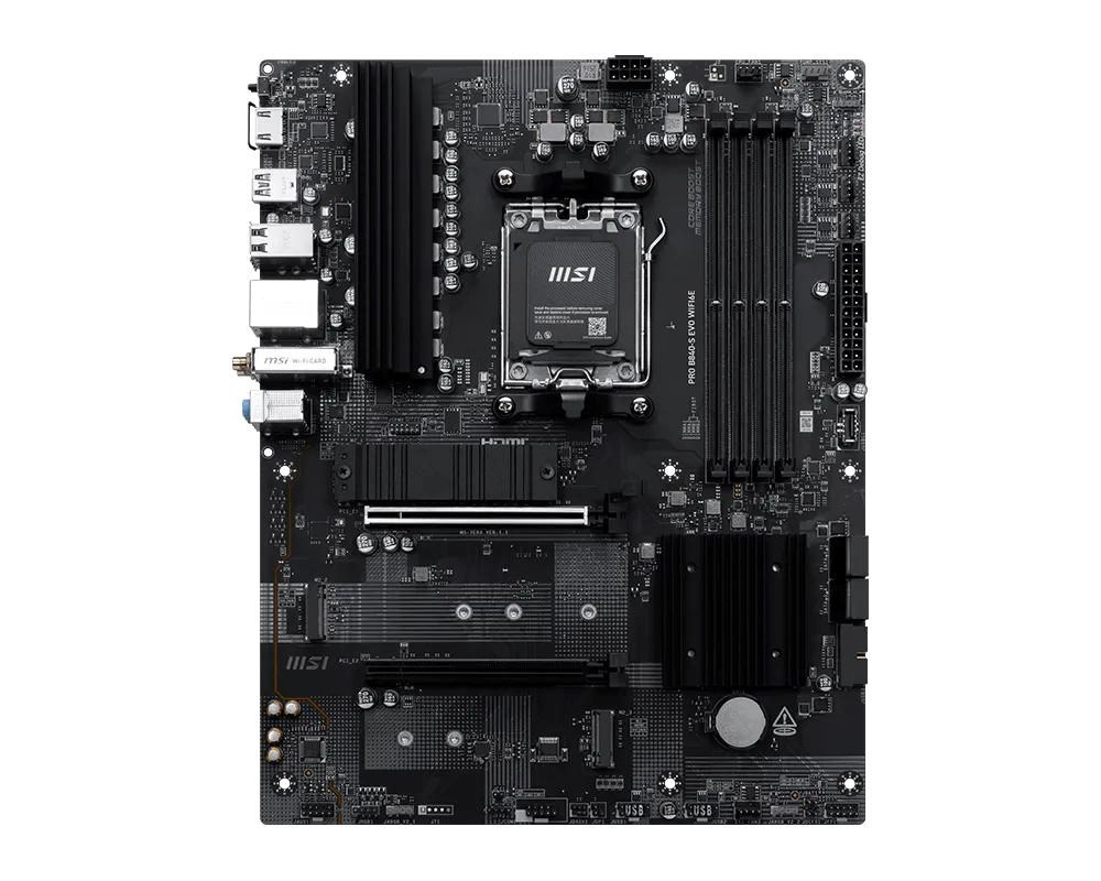 Základní deska PRO B840-S EVO WIFI6E nabízí jednoduchý design s harmonickým barevným schématem, které se dokonale hodí k černým PC sestavám. Je vybavena mnoha exkluzivními funkcemi MSI, Wi-Fi 6E s anténou EZ Antenna, 2.5G LAN a PCIe 4.0 M.2 s chladičem M.2 Shield Frozr. Deska je plně připravena pro procesory řady AMD Ryzen 9000.