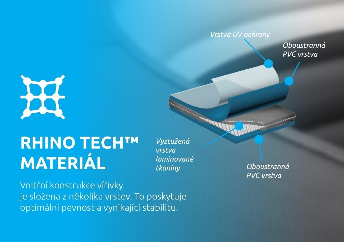 - Vnější materiál: RhinoTech Prémiové PVC - odolné a stálé, tm. šedá barva