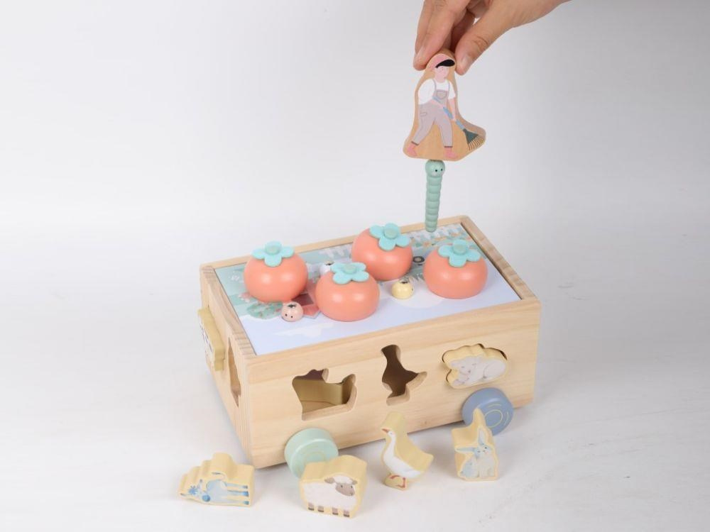 Multifunkční dřevěná pojízdná farma se zvířátky 3v1