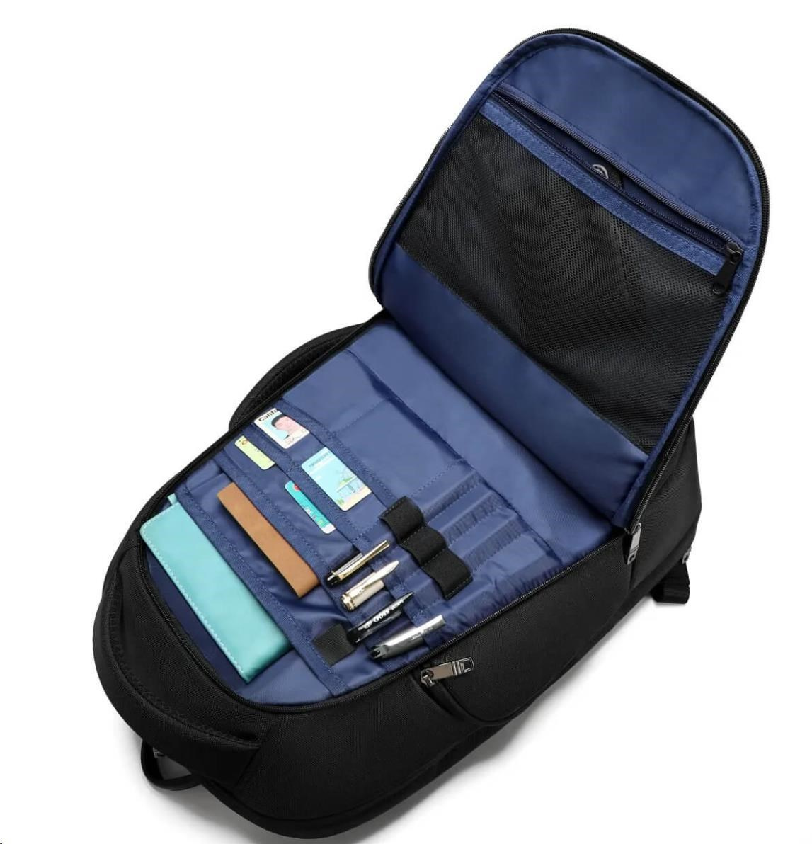 Batoh má dostatek vnitřních přihrádek pro uložení drobných předmětů.