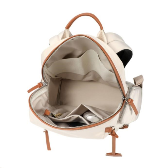 Batůžek je dostupný ve dvou barevných variantách: béžové s hnědými detaily a černé, univerzální k různému oblečení.
