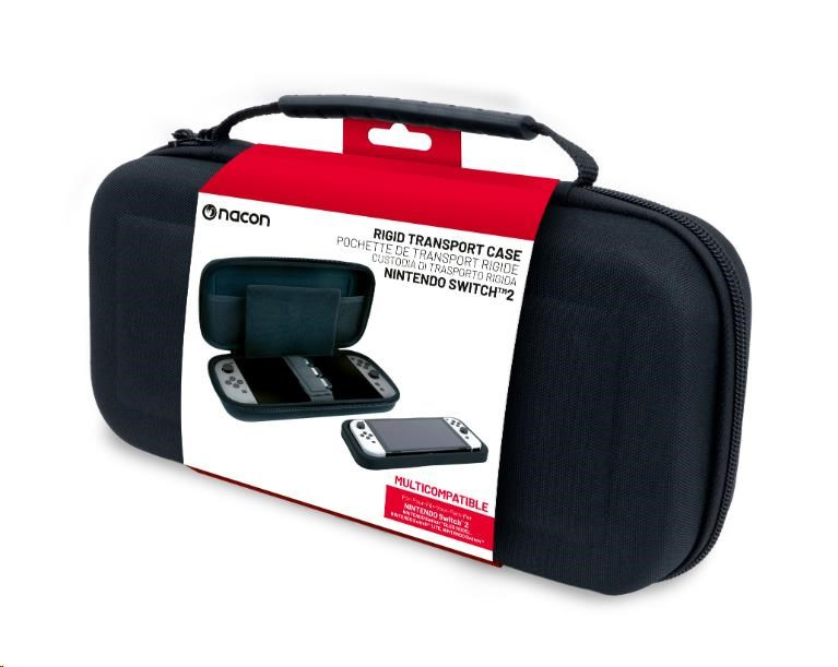 V tomto pevném přepravním pouzdru od společnosti Nacon můžete bezpečně a bez obav převážet svou herní konzoli Nintendo Switch 2. Polstrovaný oddělovač uprostřed pouzdra se postará o to, aby obrazovka konzole neutrpěla při převozu ani škrábnutí, a na pásku na suchý zip držícím konzoli na místě naleznete navíc tři kapsičky pro uložení karet s vašimi oblíbenými hrami. V síťované kapse v horní části pouzdra se poté nachází dostatek prostoru pro nezbytné příslušenství. Součástí pouzdra je také vyjímatelné mezidno pro konzole Switch, Switch Lite a Switch – OLED Model.