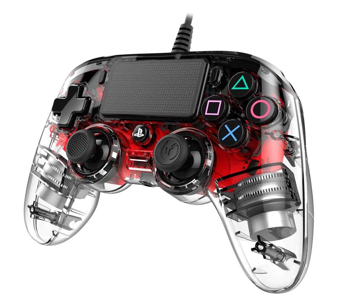 Nacon Wired Compact Controller - ovladač pro PlayStation 4 - průhledný červený