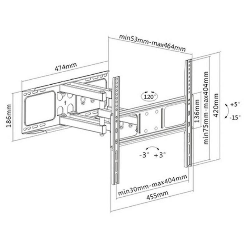 Držák pro zavěšení Tv 32-60" na zeď, otáčení +/- 75°, naklápění +5° / -15°, vzdálenost od zdi 53-464mm, VESA 75x75 až 400x400, nosnost 40kg, kvalitní konstrukce, záruka 5 let.... více
