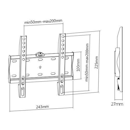 Levný nástěnný fixní držák na televize a monitory 17-43", VESA 75x75 až 200x200, vzdálenost od zdi 27mm, bez možnosti náklonu, nosnost 30kg.... více