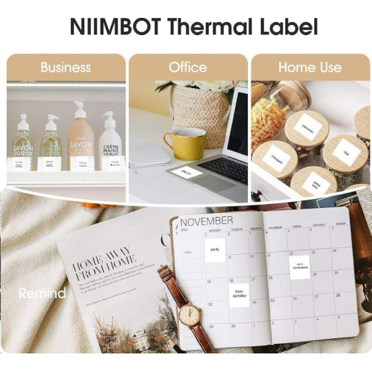 Role je určena pro přímý termální tisk pomocí kompatibilní tiskárny Niimbot. Štítky mají lepící vrstvu, která účinně přilne na různé materiály. Perforace mezi jednotlivými štítky usnadňuje jejich rozdělení po tisku.