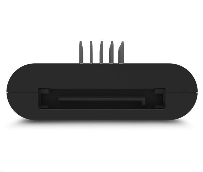 Součástí balení je SATA napájecí kabel, USB kabel, stahovací pásek na suchý zip a oboustranná lepicí páska 3M Dual Lock.