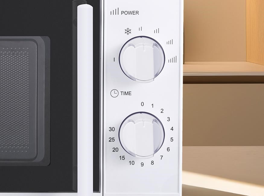 Tato mikrovlnná trouba disponuje až šesti režimy nastavení ohřevu nebo rozmrazování. Její ovládání je opravdu jednoduché a to prostřednictvím otočných ovladačů. Prvním si nastavíte sílu ohřevu a druhým čas, který požadujete na ohřev nebo rozmrazování vašeho pokrmu. Maximální čas ohřevu je 30 minut.