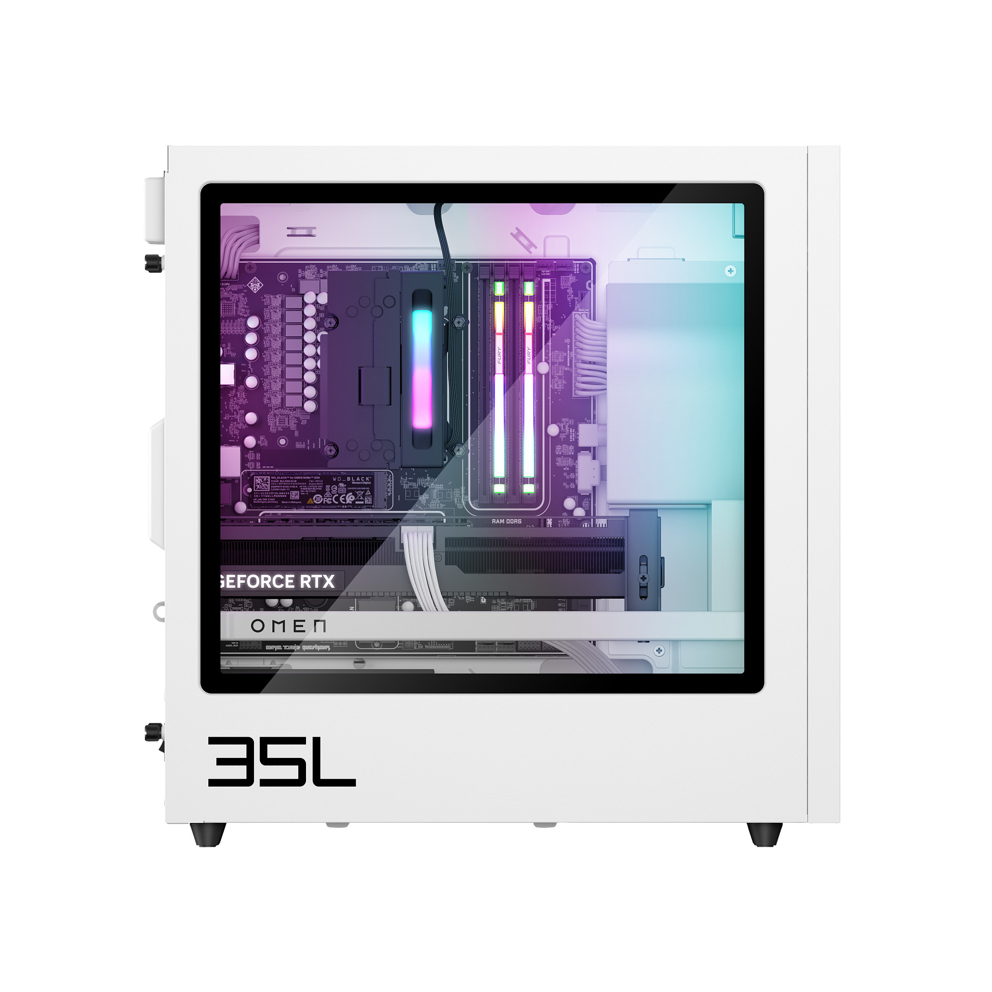 Těš se na špičkový výkon se silným a stylovým herním stolním počítačem OMEN 35L, který lze snadno upgradovat a je osazen vysoce výkonnými komponentami OMEN.