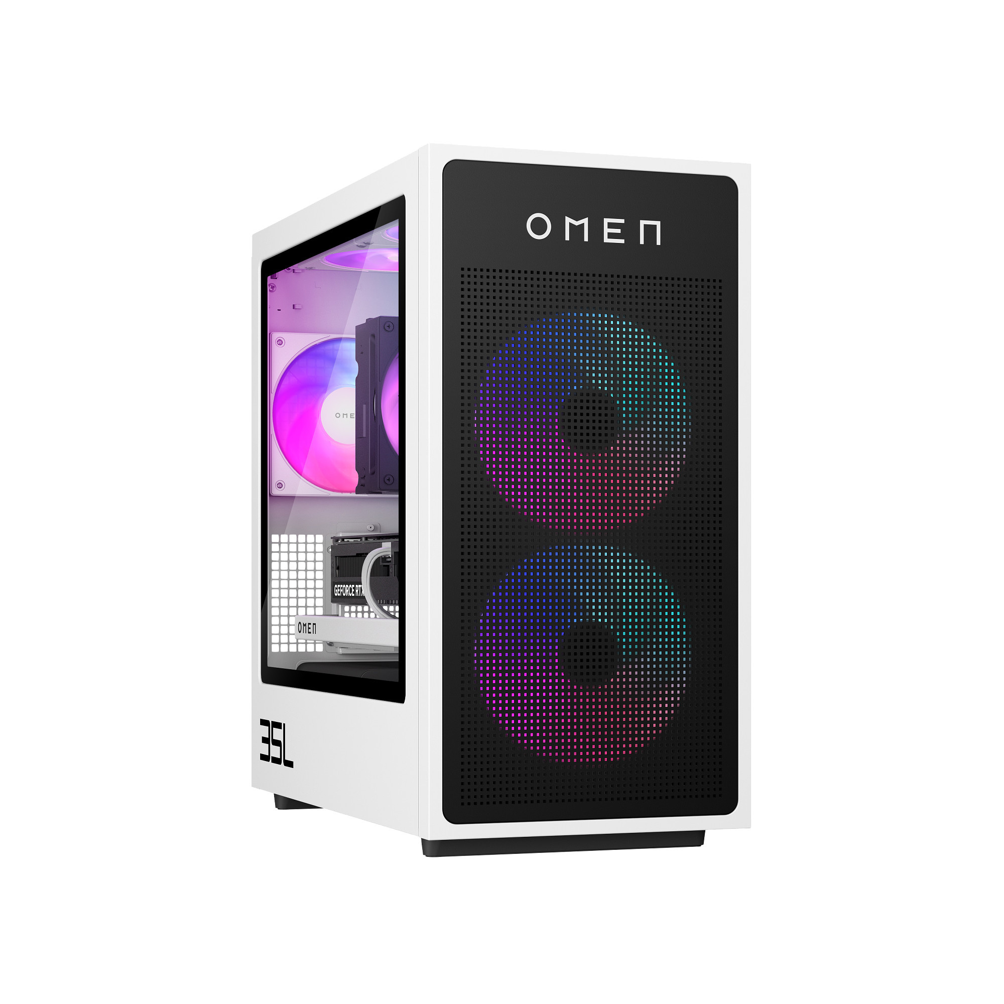 Těš se na špičkový výkon se silným a stylovým herním stolním počítačem OMEN 35L, který lze snadno upgradovat a je osazen vysoce výkonnými komponentami OMEN.