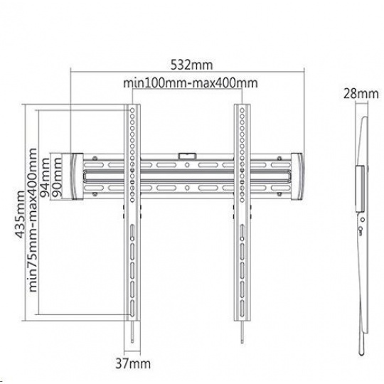 Technické údaje: max. zatížení 30kg podporuje VESA standardy 75x75 až 400x400 doporučujeme na televizory s úhlopříčkou 32-55" odsazení Tv od zdi 28mm automatické zajištění Tv proti vysazení uvolnění pomocí tahel, která zůstanou skryta za obrazovkou bezpečný držák, pevná konstrukce integrovaná vodováha pro snadnou montáž dodáváme včetně montážního materiálu barva černá záruka 2 roky Držák Fiber Mounts MC643 podporuje VESA standardy: VESA 75x75 VESA 100x100 VESA 200x100 VESA 200x200 VESA 300x200 VESA 300x300 VESA 400x200 VESA 400x300 VESA 400x400.