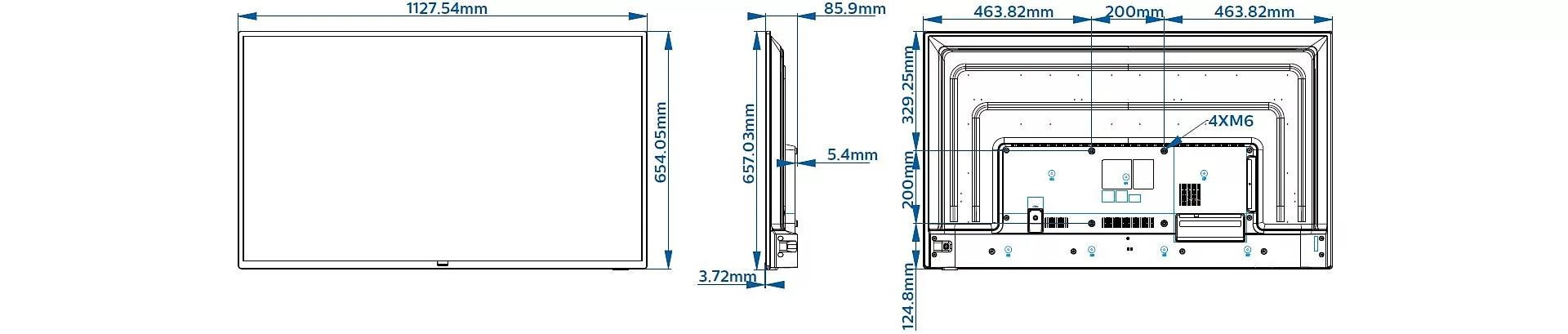 - Úhlopříčka obrazovky (metrická): 126 cm