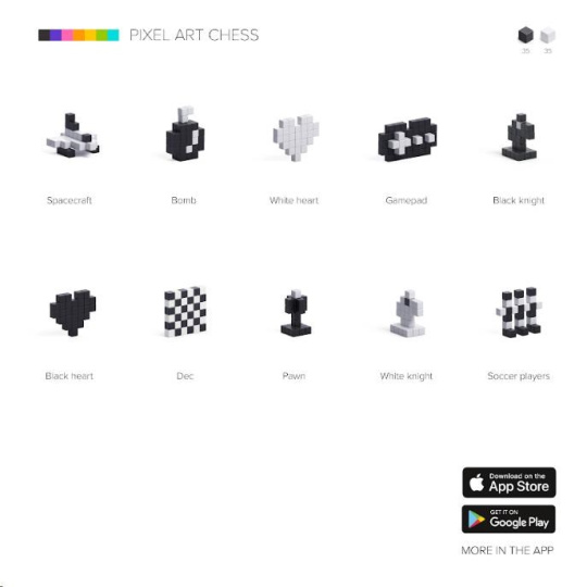 V každém balení produktů PIXIO je zdarma kód, který umožňuje přístup k exkluzivnímu obsahu aplikace. Stáhněte si aplikaci z Google Play nebo APP Store a prozkoumejte více než 1000 nápadů, jak tvořit pixelové objekty a 3D obrazce.