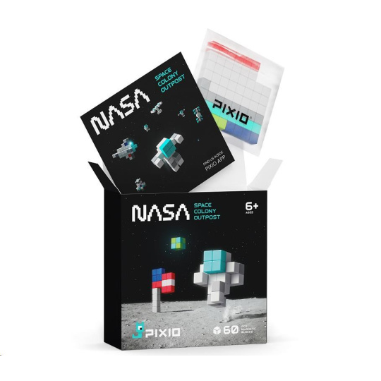 Stavebnice PIXIO 31102 NASA Space Colony Outpost (Koloniální základna) obsahuje 60 bloků PIXIO v 5 barvách. Umožní oživit vaše kreativní nápady a přinesou barevnou radost do života. Začněte tavbou jednoduchých modelů podle pokynů a poté, až budete připraveni, přejděte k vytváření vlastních návrhů. S touto sadou postavíte astronauty, raketoplán, lunární modul, lunární vozidlo, satelitní systém, rover a mnoho dalších. Pixio je splněný sen pro fanoušky Pixel Art, hráče Minecraftu a všechny, kdo si prostě rádi hrají. Použijte jej jako učební zdroj pro rozvoj kreativity dětí. Obsahuje 5 barev, které vám pomohou přeměnit jednoduché tvary na skvělé objekty a postavy (bílá 29x, šedá 9x, světle modrá 8x, červená 6x, modrá 4x, světle zelená 1x).