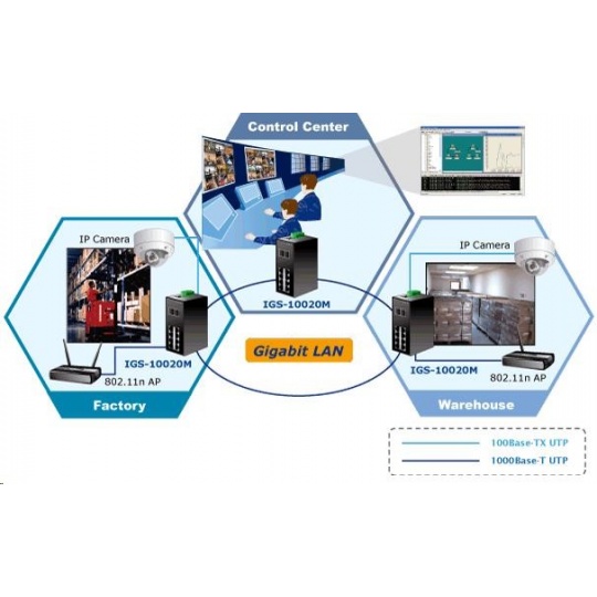 Planet IGS-10020MT, 8X 1000BASE-T, 2X SFP, DIN, IP30, -40 AŽ 75°C, WEB/SNMPV3, VLAN, IGMPV3, ESD+EFT, IPV6 Inteligentní přepínače pro průmyslový Ethernet jsou určeny do náročných provozních podmínek s velkým rozsahem pracovních teplot, nejistým napájením a častými otřesy. Zároveň poskytují vynikající možnosti vícenásobných propojení pro dosažení robustnosti propojení systémů s velmi nízkou dobou zotavení. IGS-10020MT je vybaven pro redundanci kromě dobře známé metody Spanning Tree (jejíž doba zotavení je v řádu sekund) především specializovanou funkcí "Redundant ring" která má dobu zotavení a nalezení nové cesty do 300ms. Přepínače řady IGS se snadno instalují na standardní DIN lištu nebo přímo na zeď a umožňují nasazení dobře známé Ethernetové technologie i v průmyslovém prostředí. Stejně tak jsou vhodné pro instalace do venkovně umístěných skříní s velkým kolísáním pracovních teplot (typicky bezdrátové a MAN ISP aplikace). Vlastnosti: - 8 portů 1000Base-T, Switching, Full Duplex (1000/2000 Mbps), Auto-Negotiation (10/100/1000 Mbps), automatická detekce přímý/křížený kabel na každém portu - 2 porty SFP pro instalaci modulů 1000Base-SX/LX/BX nebo 100Base-FX - propustnost sběrnice 20Gbps, podpora Jumbo Frame do 9kB, 8k MAC adres, buffer 512kB - 255 VLAN IEEE 802.1Q sítí, MAC nebo protocol based VLAN, VoIP VLAN - agregace linek "port trunking" IEEE 802.3ad LACP - IGMP v1,v2,v3 až do 256 multicast skupin, IGMP querier mode - 8-úrovní QoS prioritizace provozu dle portu, DSCP/ToS, 802.1p nebo 802.1Q značky - podpora Spanning Tree IEEE 802.1d, Rapid Spanning Tree IEEE 802.1w - IP/MAC ACL (access control list) do 123 pravidel - port shaper 500kb-80Mb/64kb-80Mb - administrace Web/SNMPv3 s podporou zabezpečeného přenosu SSH/SSL - podpora IPv4/IPv6 - pole LED indikátorů pro diagnostiku provozu - instalace na DIN lištu, montážní díl součástí - instalace na zeď, montážní díl součástí - krytí IP30 - napájení: 12-48V DC redundantní, připojení možné ze dvou různých zdrojů (nejsou součástí balení) - příkon do 10W - ochrana proti přepólování, připojení napájení na svorkovnici, umístění na spodním panelu (nepřekáží při montáži na zeď) - přepěťová ochrana napájení do 6kV proti napěťovým špičkám (EFT) - přepěťová ochrana LAN portů proti elektrostatickému náboji do 6kV (ESD) - spínací poplachové relé (24V/1A) při výpadku primárního napájení - zařízení je odolné proti pádu (IEC-60068-2-32) z výšky 75cm na všechny dopadové části - zařízení je odolné proti vibracím (IEC-60068-2-6) 10-500-10Hz, 4x g, 0,5oct/min - zařízení je odolné proti přetížení krátkodobému zrychlení 50g, dlouhodobému 4g, (IEC-60068-2-27) - EMI/EMS, elektromagnetická kompatibilita a slučitelnost dle CE EN-6100-4-2,3,4,5,6 - elektrická bezpečnost dle CE EN-60950 - pracovní teplota -40 až 75°C, vlhkost do 95% - hmotnost: 720g - rozměry: 87,8 x 135 x 56 mm.