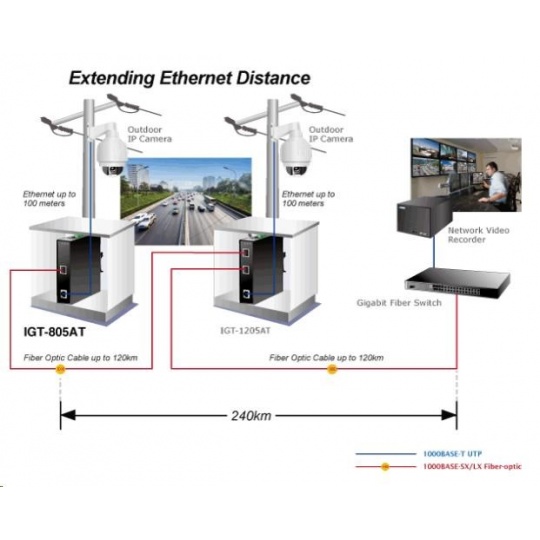Planet IGT-805AT, konvertor 10/100/1000T RJ-45 na 1x 100/1000X SFP, -40 +75°C