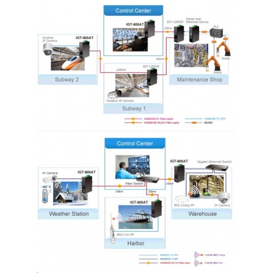 Konvertor ethernet 100/1000Base-T na optiku s volným SFP portem, určený pro průmyslové a FTTH aplikace. Možnost redundantního napájení v rozsahu DC 12-48V/AC 24V, krytí IP30, hliníková skříň, pracovní teplota -40~75°C. Montáž na DIN lištu nebo přímo na zeď. Zařízení pro průmyslový Ethernet jsou určeny do náročných provozních podmínek s velkým rozsahem pracovních teplot, nejistým napájením a častými otřesy. Konvertor se snadno instaluje na standardní DIN lištu nebo přímo na zeď a umožňuje nasazení dobře známé Ethernetové technologie i v průmyslovém prostředí. Stejně tak je vhodný pro instalace do venkovně umístěných skříní s velkým kolísáním pracovních teplot (typicky bezdrátové a MAN ISP aplikace typu FTTH). ZÁKLADNÍ SPECIFIKACE Fyzické vlastnosti: Porty: 1 x RJ-45 10/100/1000BASE-T, 1 x SFP 1000BASE-SX/LX/BX Provedení: DIN lišta, na zeď Podpora OAM: ne Napájení: zdroj 24-48V DC nebo 24V AC, připojení možné ze dvou různých zdrojů (nejsou součástí balení), celkový příkon do 3,3W Ochrana: ESD do 6KV DC, EFT do 6KV DC, ochrana proti přepólování, připojení napájení na svorkovnici, umístění na spodním panelu (nepřekáží při montáži na zeď) Provozní teplota: -40 až 75°C Rozměry: 135 x 87 x 32 mm Hmotnost: 458 g Lze instalovat do šasí: ne Průmyslové vlastnosti: zařízení je odolné proti pádu (IEC-60068-2-32) z výšky 75 cm na všechny dopadové části zařízení je odolné proti vibracím (IEC-60068-2-6) zařízení je odolné proti přetížení krátkodobému zrychlení 50g, dlouhodobému 4g, (IEC-60068-2-27) elektrická bezpečnost dle CE EN-60950 EMC Elektronická kompatibilita (EMI): ČSN EN 55032:2015+AC 2016 - Elektromagnetická kompatibilita multimediálních zařízení EMC požadavky na odolnost (EMS) : ČSN EN 55024 A1:2015 - Zařízení informační techniky ČSN EN 55035:2017 - Elektromagnetická kompatibilita multimediálních zařízení ČSN EN 61000-4-2:2008 - Elektrostatický výboj ESD ČSN EN 61000-4-3 A2:2010 - Vyzařované vysokofrekvenční elektromagnetické pole ČSN EN 61000-4-4:2012 - Rychlé elektrické přechodné jevy/skupiny impulzů EFT ČSN EN 61000-4-5:2014 - Rázový impuls a přepětí ČSN EN 61000-4-6:2013 - Odolnost proti rušením šířeným vedením, indukovaným vysokofrekvenčními poli ČSN EN 61000-4-8:2009 - Magnetické pole síťového kmitočtu ČSN EN 61000-4-11:2004 - Krátkodobé poklesy napětí, krátká přerušení a pomalé změny napětí.