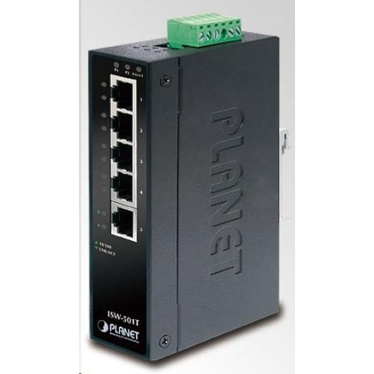 Planet ISW-501T, 5x 10/100, DIN,IP30, rozšířený teplotní rozsah -40~75 st.C