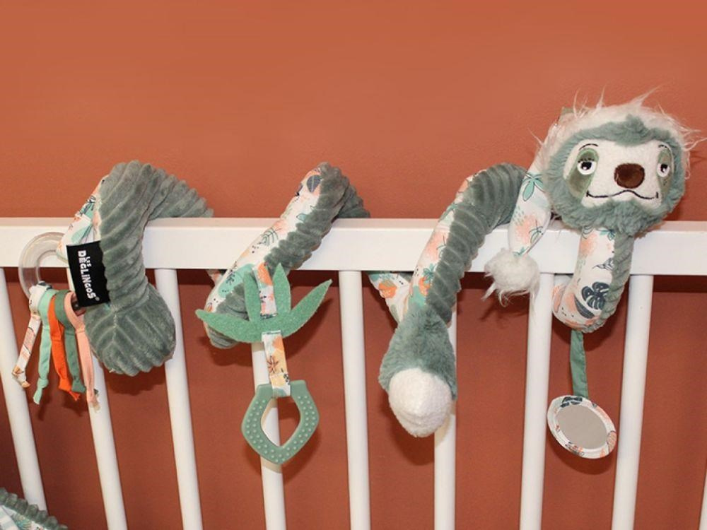 Plyšová spirála na postýlku, na kočárek nebo na hrazdičku, v podobě roztomilého lenochoda upoutá pozornost každého miminka. Úžasně heboučká spirála s chrastítkem, zrcátkem, kousátkem i pískací hračkou stimuluje dětské smysly, rozvíjí jemnou motoriku a koordinací očí a rukou. Prohlédněte si originální spirálu, která vykouzlí úsměv na tváři dětem i rodičům..