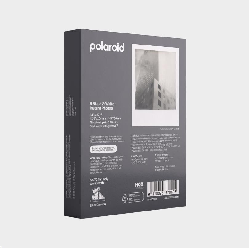 SX-70 film has a lower ISO than our other films, which makes it perfect for capturing fine detail in well-lit conditions. Our latest b&w film formula makes high contrast photos with depth, atmosphere and distinctive analog texture. Its iconic white frame is a piece of instant history.