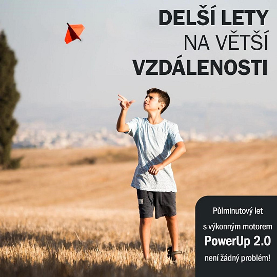 Skládání papírových vlaštovek baví každou generaci. Sada PowerUp 2.0 RED vybaví obyčejné vlaštovky vlastním elektrickým pohonem, díky kterému zůstane ve vzduchu déle než půl minuty a uletí desítky metrů.
