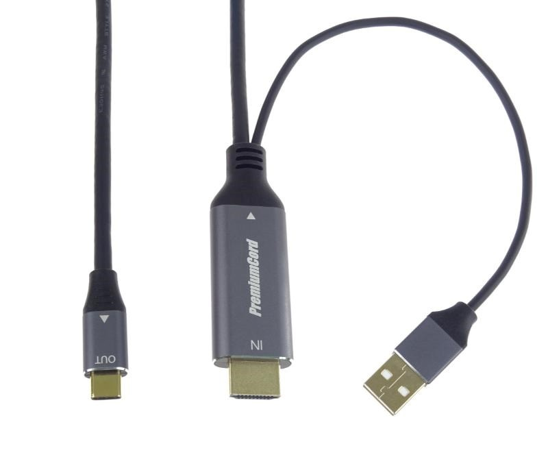 PremiumCord HDMI2.0 na USB-C kabel pro monitory se vstupním USB-C konektorem, 4K@60Hz,1080p Aluminium 2m