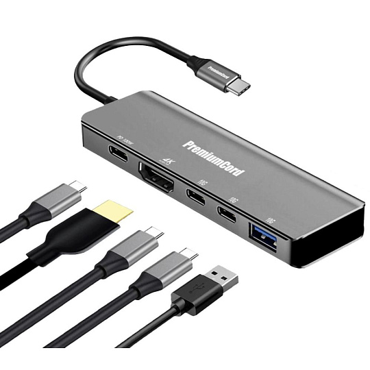 PremiumCord Adaptér USB-C na 4K@60Hz HDMI + 10G USB3.2 A + 10G 2x USB-C + PD