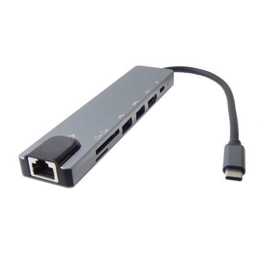 - Výstupní konektor: HDMI female + USB3.0 female + USB2.0 female + PD (power delivery) + čtečka karet SD/TF + RJ45 konektor na ethernet 10/100Mbps