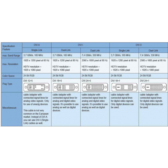 - Kabel lze použít pouze pro konektor DVI-I , nedá se zasunout do konektoru DVI-D