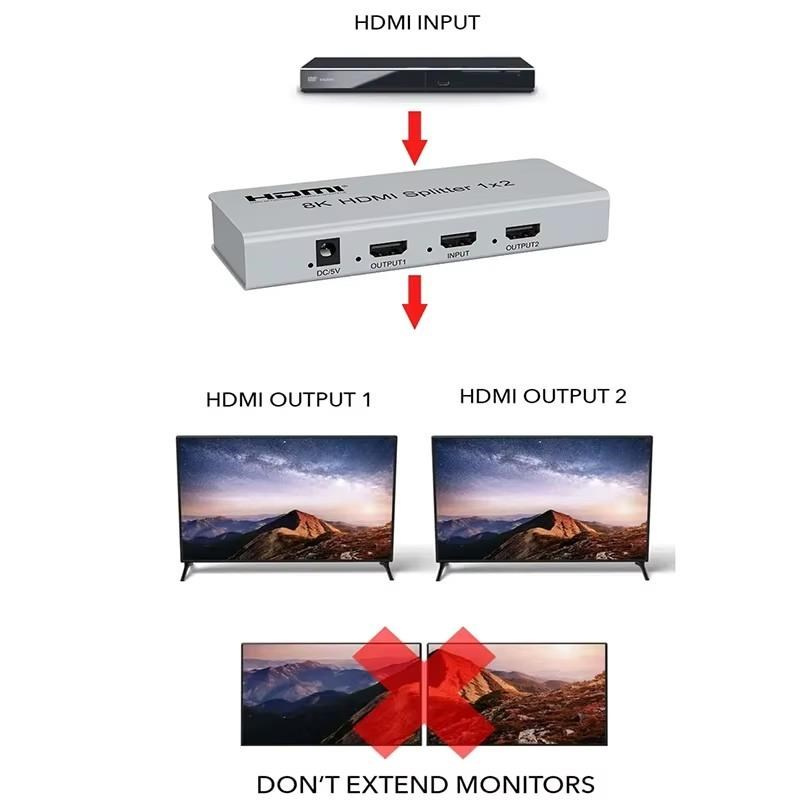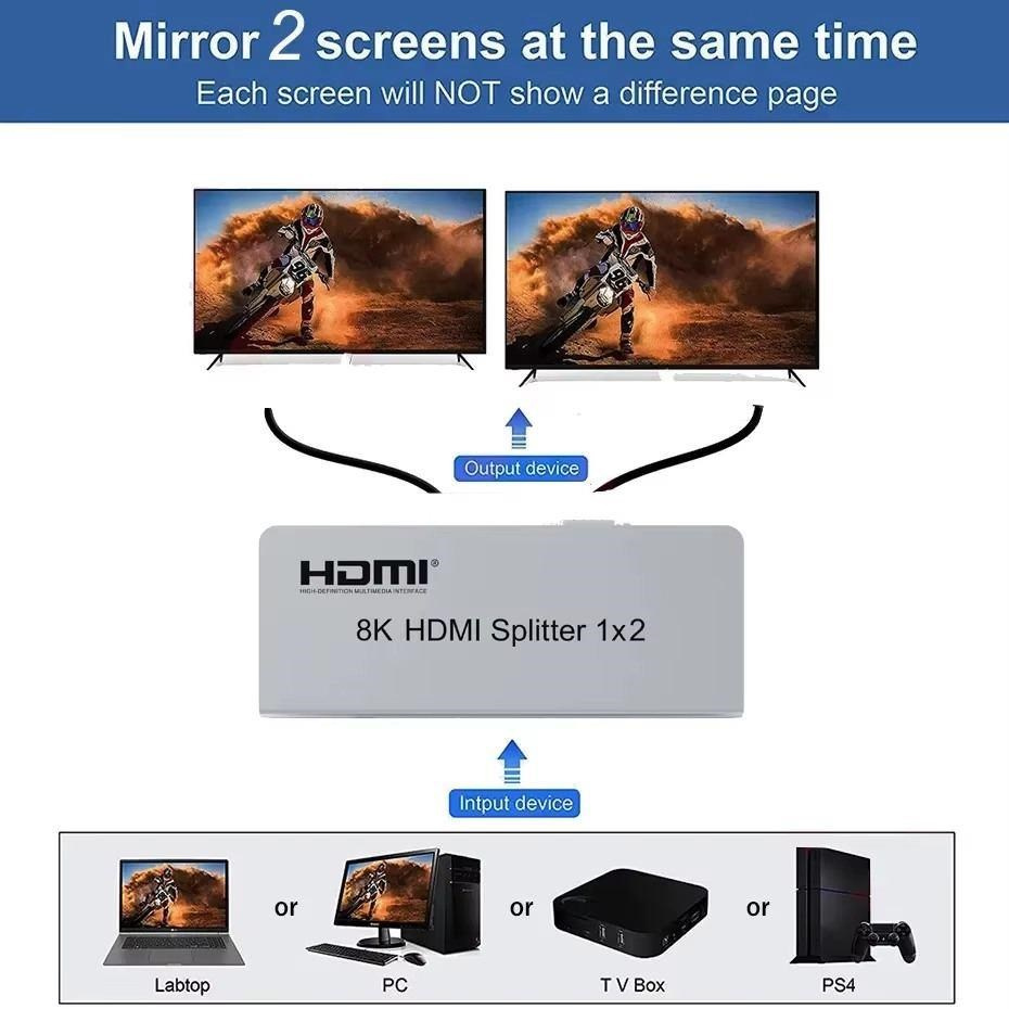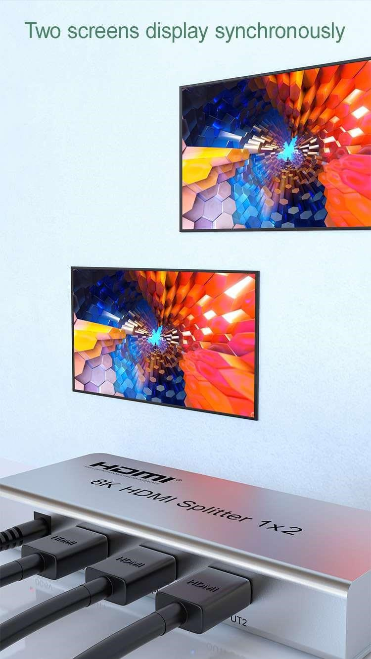 Splitter podporuje HDMI signál s rozlišením až 8K@60Hz, 4K@120Hz nebo FULL HD 1080p