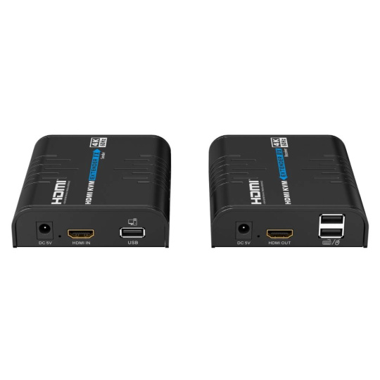 Zařízení umožňuje po jednom síťovém kabelu nebo přes ethernet síť přenést HDMI 4K@60Hz nebo FULL HD 1080p signál a připojit USB periferie, klávesnici,myš nebo dotykovou obrazovku až na vzdálenost 120m nebo 200m při přímém propojení.