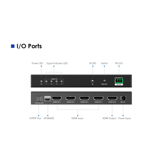 PremiumCord HDMI switch 4:1 s podporou rozlišení 8K@60Hz,4K@120Hz, 1080P, HDR, s dálkovým ovladačem