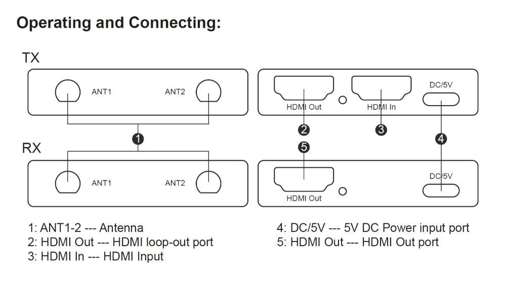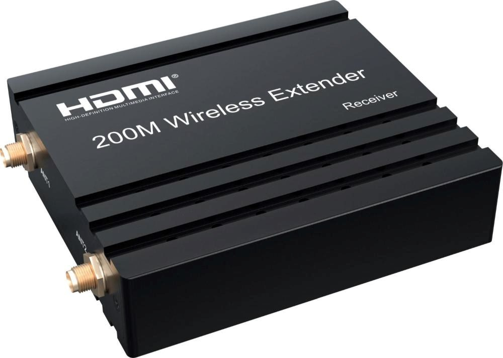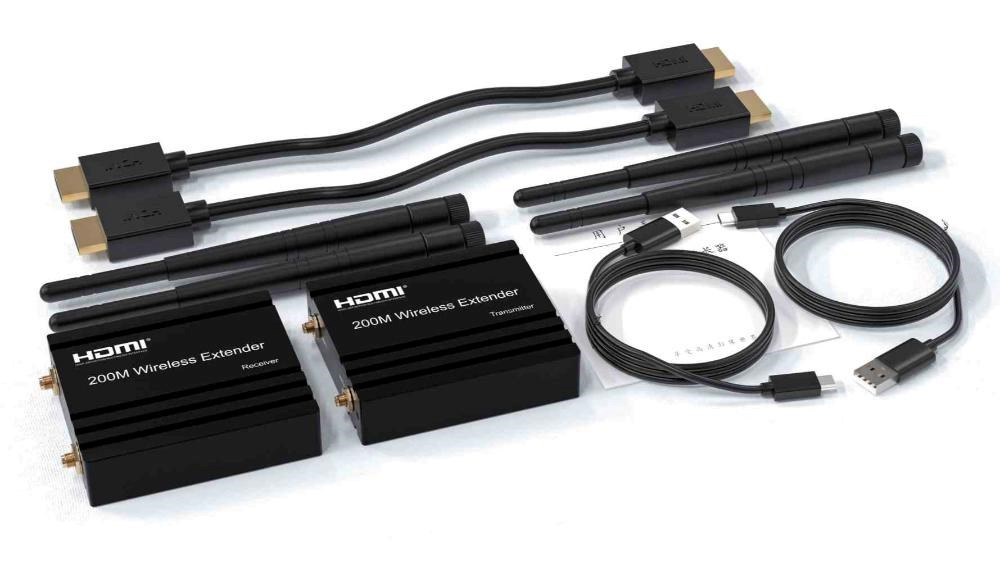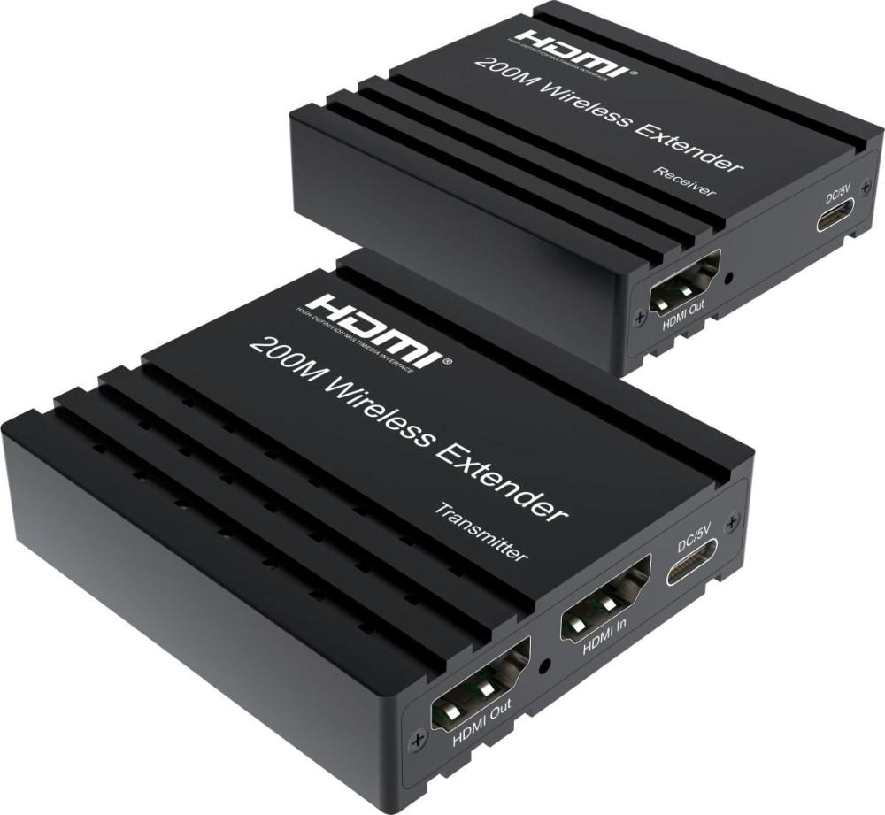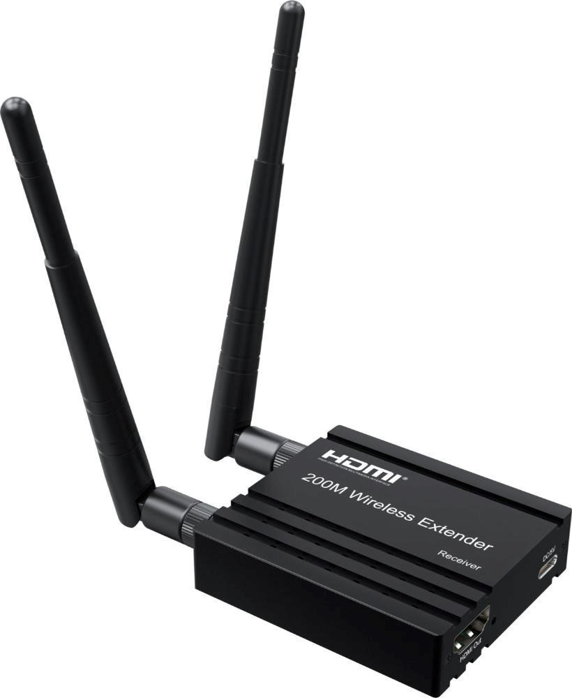 - Bezdrátový vysílač a přijímač signálu HDMI umožňuje připojit HDMI monitor nebo promítačku na vzdálenost až 200m na otevřeném prostranství.
