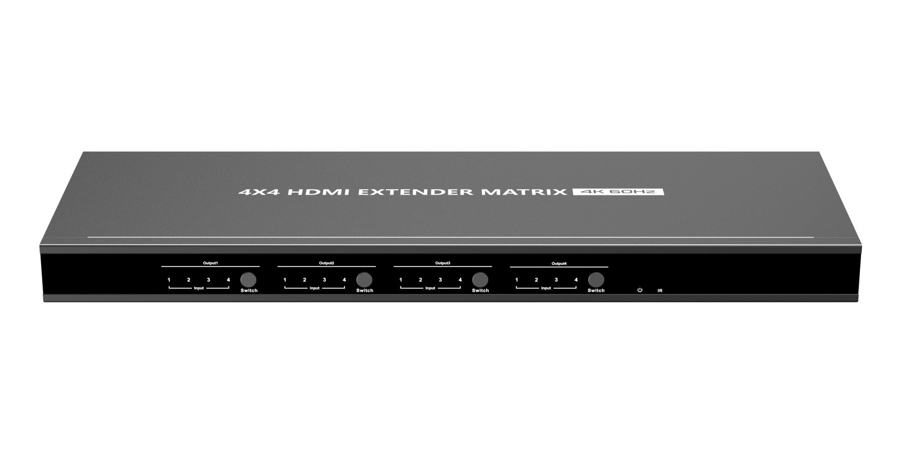 Umožní přepínat a propojit čtyři zdroje HDMI signálu na 4 HDMI zobrazovače, monitory na velkou vzdálenost až 70m pomocí UTP kabelu a navíc 4 lokální monitory