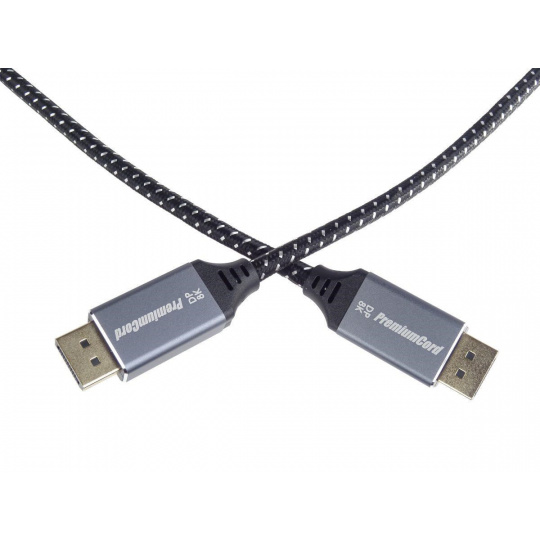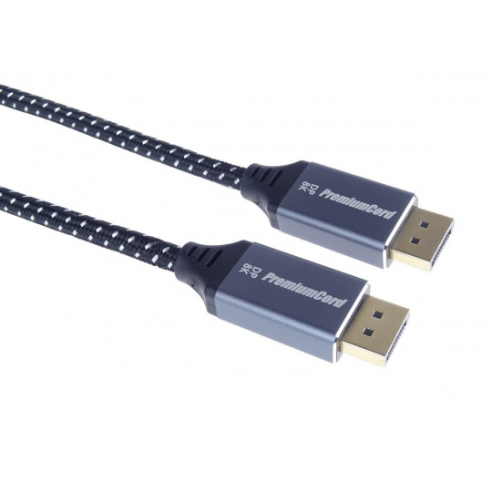 PremiumCord DisplayPort 1.4 přípojný kabel M/M pro rozlišení 8K, kovové krytky a zlacené konektory, 1,5m