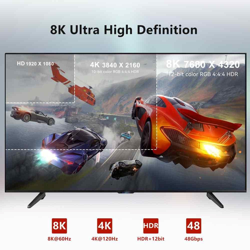 - HDMI 2.1 Ultra High Speed aktivní optický fiber kabel, podporuje HDMI2.1 nebo nižší HDMI2.0 a HDMI1.4