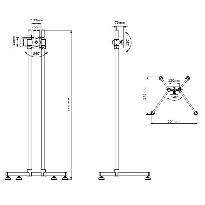 EDBAK SV52 profesionální stojan na monitor nebo Tv Profesionální stojan na monitor nebo Tv 17-43", výškové nastavení 300-1650mm, otáčení +/- 60° a náklon +/- 60°, pivot +/- 360°, podstava bez koleček, VESA 75x75 a 100x100, nosnost 20kg Kvalitní podlahový stojan na monitory a televize 17-43". Výšku obrazovky je možné nastavit v rozmezí 300-1650mm. Držák podporuje VESA standardy 75x75 a 100x100, umožňuje naklápění +/- 60°, otáčení +/- 60° a funkci pivot +/- 360°. Systém vedení kabeláže. Podstava s rozměry 664x545mm. Snadná instalace. Profesionální kvalita, pěkný dizajn, barevné provedení černé. Záruka 10 let. Profesionální stojan na televize a monitory Edbak SV52 Technické údaje: maximální hmotnost obrazovky 20kg na televizory a monitory s úhlopříčkou 17" až 43" podporuje VESA standard 75x75 a 100x100 náklon obrazovky +60° / -60° otáčení obrazovky +60° / -60° pevná podstava bez pojezdu nastavitelná výška obrazovky 300-1650mm rozměry podstavce 664mm x 545mm funkce PIVOT - horizontální i vertikální otočení obrazovky +/- 360° výborná stabilita profesionální robustní konstrukce barevné provedení černé záruka 10 let Držák Tv monitoru na stojanu Edbak SV52Podstava na stojanu Tv monitoru Edbak SV52 Stojan na monitor nebo televizor EDBAK SV52 podporuje VESA standardy: VESA 75x75 VESA 100x100 Na televizní stojan EDBAK SV52 je možné zavěsit všechny typy televizorů a monitorů, které podporují některý z výše uvedených VESA standardů a mají hmotnost do 20kg. Velikost obrazovky není podstatná, pouze doporučená. Je tedy možné použít i větší monitory a televizory..