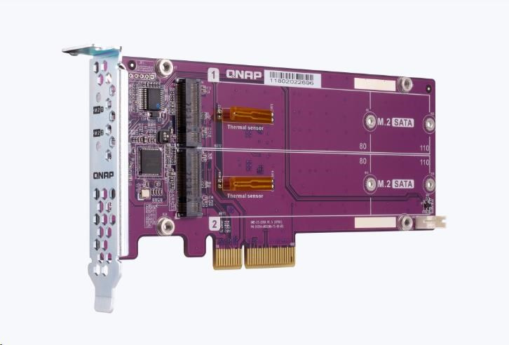 Karty PCIe QM2 přidávají QNAP NAS zařízením podporu pro M.2 SATA SSD, takže uživatelé mohou konfigurovat SSD cache, caching pool nebo svazek s automatickým stupňováním pro zlepšení celkového výkonu NAS. QM2 posiluje výkon přidáním M.2 SSD. Nezabírá 3,5" pozice pro disky, což umožňuje maximalizovat úložnou kapacitu i výkon.